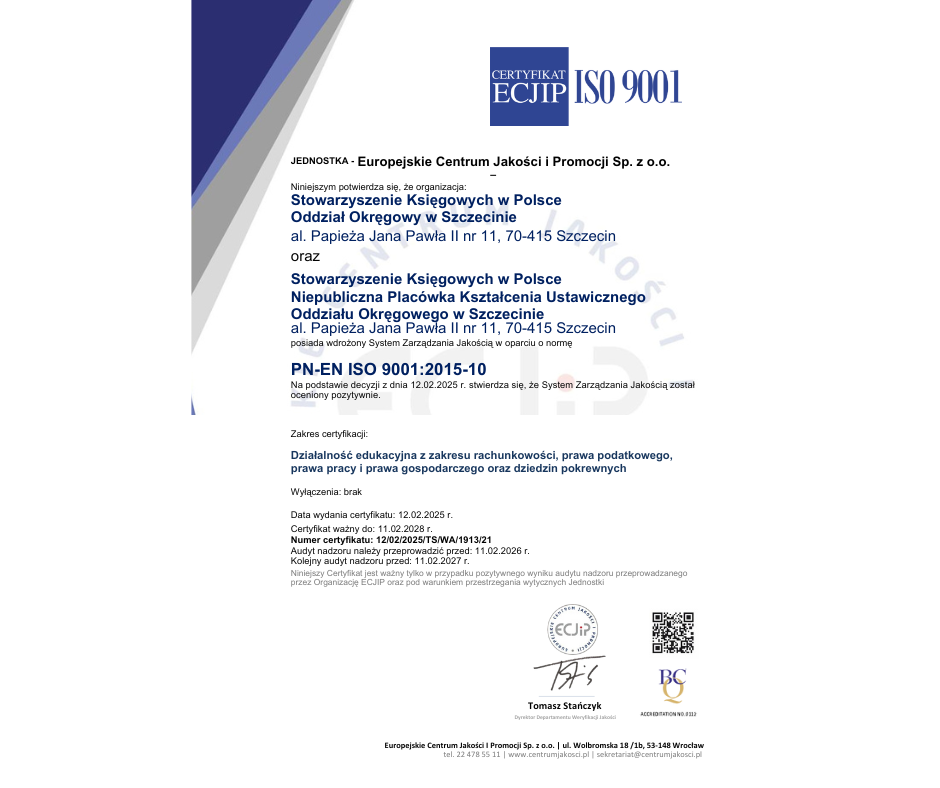 Informujemy, że w Oddziale Okręgowym w Szczecinie został wdrożony System Zarządzania Jakością w oparciu o normę PN-EN ISO 9001:2015-10.